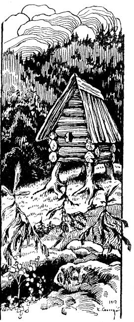 Пошел дед Грибук к хатке и слышит точно: и визг, и крик в хатке. А в окошечке зеленые огни светятся. И вся хатка, как живая, дрожит, на курьих лапках качается…