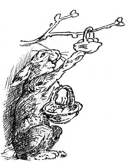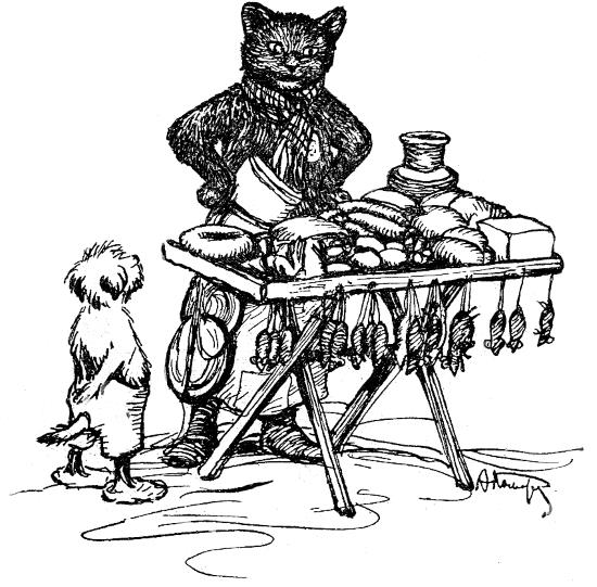 Кликнул кот кошек, стал товар раздавать: и Мурысе дал, и Брыске дал, и Коташке дал, и Машке дал, и черному коту, и рыжему, и белому по мышонку целому… А сам с горя и есть не стал, пошел домой, сел на окно и виду не показывает, что с ним на базаре было…
