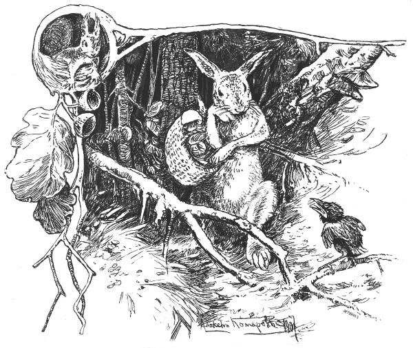 Поскакала зайчиха вперед, а вороненок, путаясь в высокой траве, заковылял за нею. Кое-как, с грехом пополам, добрался он до высокой сосны, а там уже старые вороны его схватились – переполох подняли: