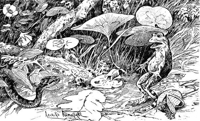 лягушонок.– Вот, – ворчит, – не было печали!.. Никогда у нас змей не бывало, а теперь – не угодно ли? Оно, конечно, может, это странница какая-нибудь. А все-таки лучше от нее избавиться.