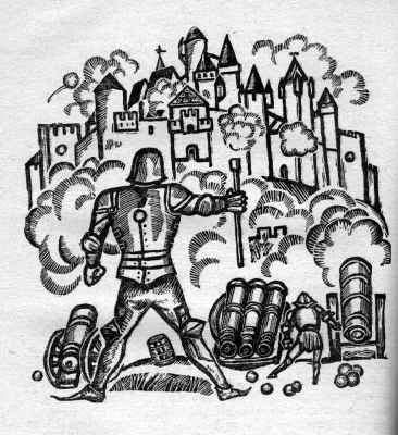 Я — Уильям Эпльбай, главный бомбардир английского войска, идущего на Орлеан, и со мной мои бомбарды — бочоночки, толстые и короткие, настоящие красотки и послушные, как ягнята. Куда я их наведу, тотчас начнут плевать огнем и каменными ядрами — прямо огнедышащие драконы. Но я мало надеюсь, что придется мне пострелять в свое удовольствие. Эти арманьяки, как только увидят наше войско, наших рыцарей, закованных в сталь, наших знаменитых лучников и в руках у них луки, длинные, в человеческий рост,— как только увидят нас, душа у них шмыгнет в пятки и они тотчас откроют ворота и вынесут нам на блюде ключи от города: покорно-де просим пожаловать.