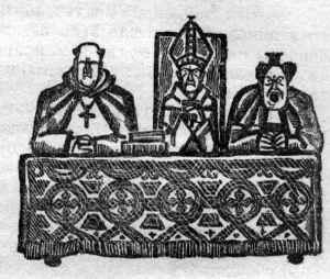 У меня самого в глазах начинают мелькать и кружиться какие-то светящиеся точки, искры, звезды, трепещущие крылья. У меня кружится голова. В этой высокой обширной зале какой-то тяжкий воздух. Мне кажется, что пахнет серой. Откуда я знаю, может быть, эти сорок епископов, и аббатов, и докторов церковного права переодетые черти?