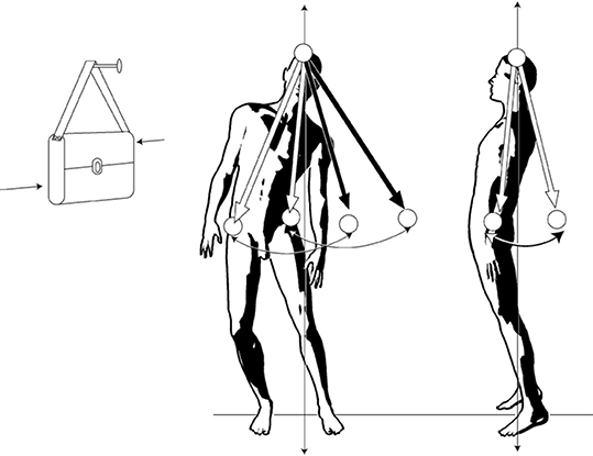 Рис. 24. Упражнение-маятник «Котомка»: А (слева) – мыслеобраз, Б (справа) – направление вправо-влево, В – направление вперед-назад