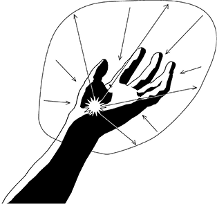 Задержка дыхания – 2 удара, расширение продолжить еще на 3–5 см, кисть максимально выпрямлена и напряжена. Тело остается расслабленным. При расширении энергетической кисти – сердца – увеличенный объем набирает Силу.