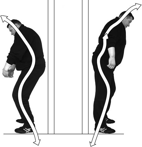 Что, не очень получилось? Тогда сделайте полшага от стены и немного согните колени, но спину от стены не отсоединяйте. И как? Согнутые в коленях ноги дают возможность мышцам бедер отпустить и расслабить поясницу. Теперь поясница свободно двигается, и не составляет труда прижать ее всей площадью к стене. Копчик при этом слегка стремится вниз и вперед.
