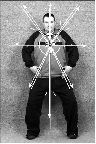 После завершения практики Д целесообразно выполнить «проработку» всех восьми «окон» одновременно 1 или 3 раза, по желанию. Фактически, выполнив упражнение «Внутренний маятник» Свода Лады, мы на вдохе расширяемся от центра Яра по восьми направлениям. На выдохе сужаемся к центру. Цикл дыхания 8–4–8–4 (фото 81).