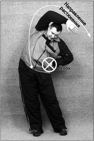 Совсем простое упражнение. Главное, надо почувствовать маятниковую упругость возврата. Встаем прямо. Одна рука упирается в бок. Она же выполняет и функцию блока. Другая рука поднята вверх и, как противовес, углом обхватывает голову.