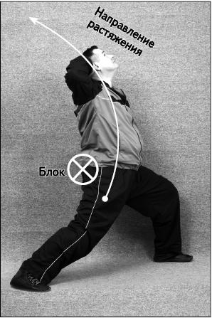 Более точно можно назвать это упражнение «Прогиб вперед», так как, отклоняя руки и голову назад, область поясницы и живота мы стараемся подать вперед. Блок в области поясницы. Зона-мишень – упругие мышцы живота и передней группы бедер. Техника выполнения такая же, как для практики А (фото 103).