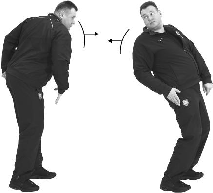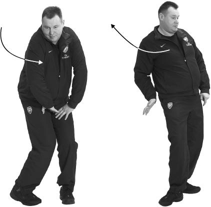Вращение плечом в диагонально-горизонтальных плоскостях: А (слева) – вариант А, Б (справа) – вариант БТочнее выполнить заданное движение плечу помогает все тело. Корпус качает маятник «Метроном», активно задействованы колени.