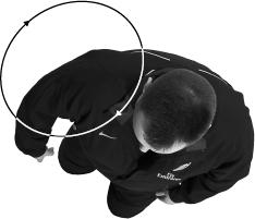 Намечаем окружность с радиусом около 1 м вокруг плеча. Начинаем вращение плечом вперед на вдохе; на выдохе, со спуртом, плечо проходит полукруг сзади. Тело участвует в движении плеча, обеспечивая работу волной Силы от стоп. Глаза сопровождают взглядом идеомоторную траекторию движения плеча Ведогона.