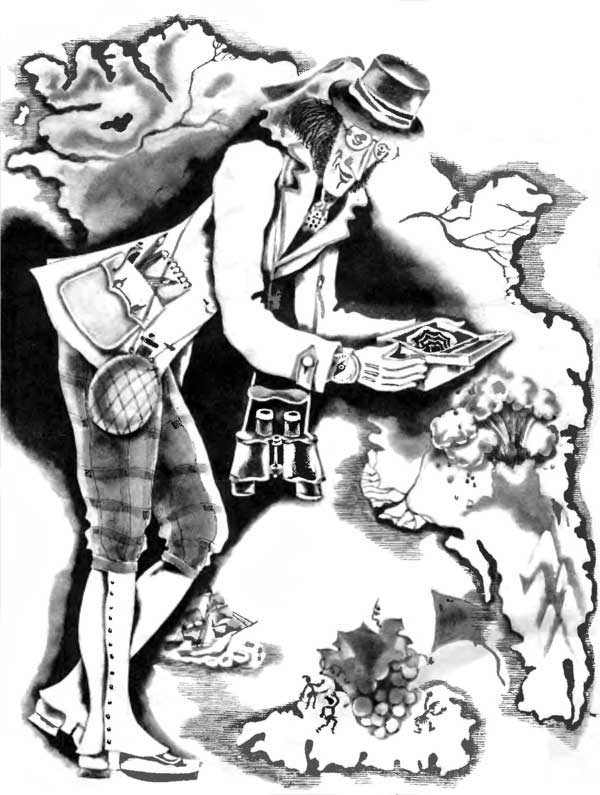 Мой дядюшка Билл,Который жилВ джунглях пять лет подряд,Попал под град,Упал в водопад,Но всё же вернулся домой, назад,Посетив Ассуан, Ашхабад, Арарат,Гонол'yлу и Хайдараб'aд.Он вернулся коричневый, как шоколад,И стройный, как акробат.И мне рассказал, как ужаснейший скат,Страшнее льва и тигра стократ,Напал на него у острова Бат,Где растет виноградРазмером с гранат,Где в тёмной пещере нашел он клад…И он показал мне маленький камень,Волшебный камень — АГАТ.