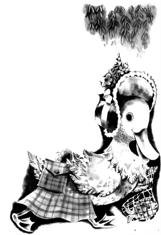 Утка, белее, чем молоко,С глазами, как два фонаря,По тихому озеру важно плыветИ говорит: «Кря!»Она плывёт в прозрачной водеИ углядев пескаря,Долго ещё наблюдает за нимИ говорит: «Кря!»Когда же М'oлли под ивой ждёт,Чтоб дать ей кусок сухаря,Она украдкой на Молли глядитИ говорит: «Кря!»Потом, почистив о перья клювЖелтей желтизны янтаря,Идёт, переваливаясь, домойИ говорит: «Кря!»