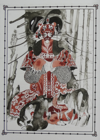 — О повелитель! Мы шли к тебе с поклоном и несли богатые подарки. Но по дороге на нас напал какой-то другой тигр и отнял всё, что мы несли тебе.