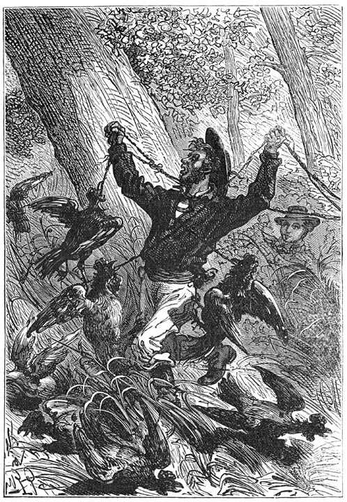 — Ура! — закричал Пенкроф, бросаясь со всех ног к своей дичи. Не прошло и минуты, как три тетерева уже бились у него в руках.