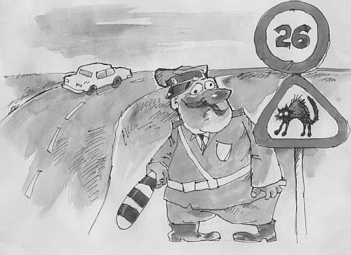 Автоинспектор, вид которого в данный момент мало чем отличается от «виновницы нарушения»,долго смотрит вслед убежавшей кошке, потом переводит свой потухший взгляд на меня:
