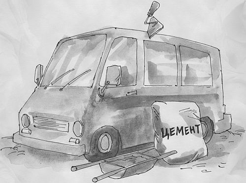 К встрече с покупателем мы основательно подготовились. На глушитель натянули резиновый шланг, второй конец которого пропустили сквозь дыру в стене бокса и уже там, в соседнем дворе, опустили в канализационный люк. Этим обеспечивалась «бездымная» работа двигателя. Сам двигатель мы прогрели и залили в него густое масло. Этим обеспечивались, с одной стороны, легкий запуск двигателя, а с другой —его «бесшумная» работа. А чтобы невозможно было проверить ходовую, перед стоящим задом к стене «РАФиком» мы поставили автопогрузчик... Последними штрихами подготовки были создание полумрака путем выкручивания лампочки из ближайшего к нашей машине плафона на потолке бокса, и обсыпание крыши «РАФика» снегом... Окончив подготовку к визиту покупателя, мы посмотрели на машину со стороны. По нашему с Сашей общему мнению, она выглядела очень даже неплохо...