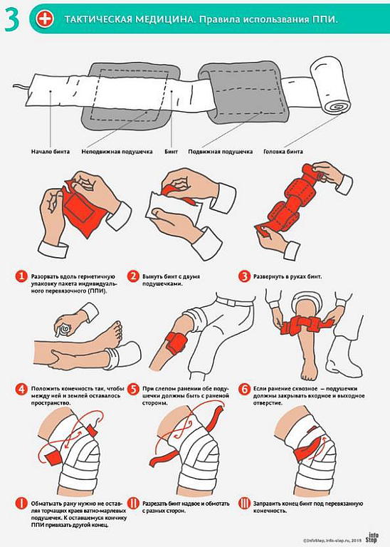 • Наложить на рану герметичную оболочку ППИ прорезиненной стороной к поверхности кожи. Строго на голое тело — между оболочкой и поверхностью кожи не должно быть ничего!