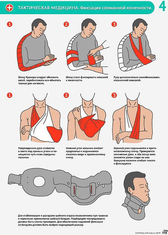 Предпочтительно нахождение пострадавшего в полусидячем положении — как во время наложения повязки, так и при дальнейшей транспортировке. Это несколько облегчит его состояние.