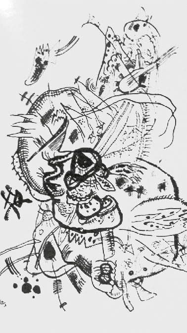 Рисунок Василия Кандинского из книги «Точка и линия на плоскости», напоминающий клетки под микроскопомВасилий Кандинский в своей книге «Точка и линия на плоскости» называет мироздание «замкнутой космической композицией, которая, в свою очередь, состоит из бесконечно самостоятельных, также замкнутых в себе, последовательно уменьшающихся композиций… если мы откроем чудесную, гладко отполированную, подобную слоновой кости головку мака (она в итоге тоже крупная шарообразная точка), то обнаружим в этом теплом шаре выстроенные в регулярную композицию скопления холодных серо-голубых точек, несущих дремлющие силы плодородия, так же точно, как и в живописной точке» (Кандинский, 2006). Художники Серебряного века и квантовые физики исследовали одну и ту же Вселенную разными способами и, объясняя ее разными, по сути, языками, приходили к единым выводам.