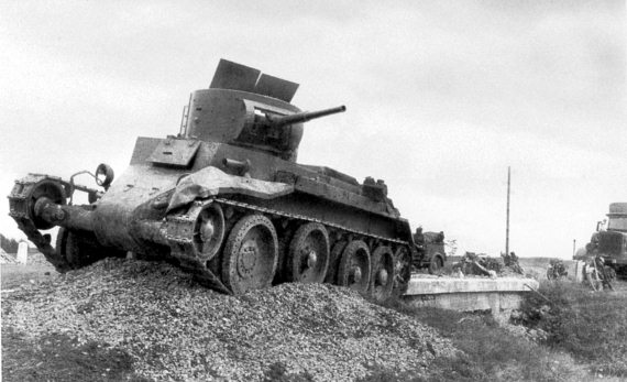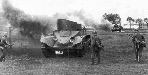 Подбитые танки «БТ». На переднем плане «БТ-2», на заднем «БТ-5»