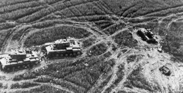 Подбитые танки «КВ-1» и немецкий «Pz-III»