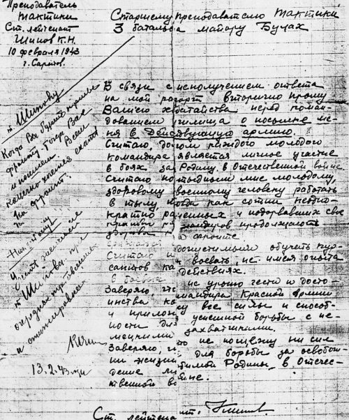 Приехали на фронт под Невель. Это уже конец лета – начало осени 1943 года. Ехали к передовой ночью, устали, конечно, страшно. Видно только синий огонек впереди идущей машины, потому что фары зажигать нельзя. Вокруг какие-то вспышки, осветительные ракеты летят… Расположились. А танк, когда приезжаешь на место, он же теплый – махина большая. На моторное отделение брезент накинешь – там и в морозы благодать. Вот уже позже, зимой, пока танк едет, нарочно закрываешь жалюзи, чтобы он нагрелся до предела. Приезжаешь, брезент на моторное отделение, края прикидываешь снегом или землей. И там кайф! Можно до гимнастерки раздеться! Только задремали, вдруг вызывают командиров танков моего взвода к командиру батальона: «Утром идет в наступление батальон пехоты. Ваша задача – поддержать этот батальон, вырваться вперед, подавить огневые точки. Пройти, проутюжить немецкие позиции, чтобы наша пехота могла двинуться дальше. По данным разведки, у немцев в обороне несколько пулеметов и рота автоматчиков».