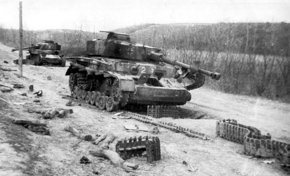 Подорвавшиеся на минах немецкие танки Pz.IV. 26-я армия 1944 год