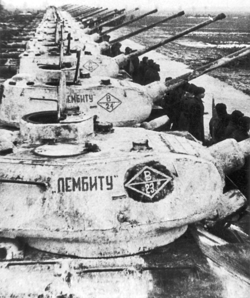 Пошли мы дальше воевать. Прошли мы тогда Алленштайн, Гутштадт. Стояли севернее деревни Петерсвальде, недалеко от того места, где Черняховского убили. Там были скотные дворы. Их по два-три раза в день пехота брала, ее оттуда выбивали. В ночь на 25-е мы съездили заправились, пополнились снарядами, горючим и вернулись обратно. А 25-го приказали взять эти дворы. Уже 4 машины у нас было – с ПРБ пригнали подремонтированные. Сходили один раз в атаку – машину одну подбили. Мы вернулись обратно. Откуда там появились противотанковые средства – не знаю. До этого мы просто хулиганили – останавливались метрах в 600 от немецких траншей и что хотели, то и делали. Не было у немцев противотанковых орудий. А тут вдруг болванкой… Наводчик и заряжающий погибли.