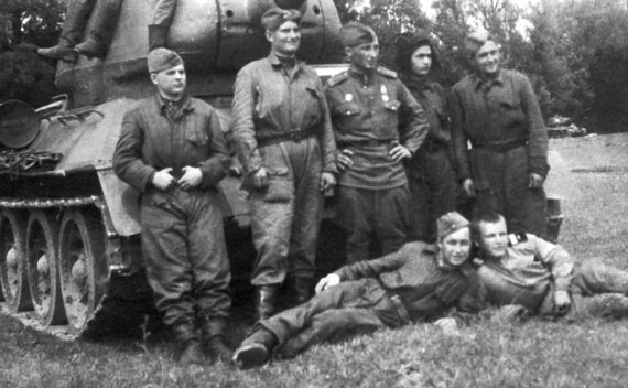 14 января 45-го началось наступление на Восточную Пруссию. Артподготовка была сильная. Туман, авиации не было, шли без всякого авиационного прикрытия. Метров 80 видимость, не больше – просто в темноту идешь. Редко-редко где пехота появится. Проскочили немного, слышим – стрельба. Счетверенные немецкие зенитки 20-миллиметровые, «эрликоны». Мы их «собаками» называли. Слышим – где-то за спиной, рядом. Повернули немного, видим – там полукапонир, в нем установки, амбразуры в нашу сторону. При случае их выкатывали и стреляли по воздуху. Ну, мы их подавили сразу. Мы поддерживали тогда штрафбат. Такие отчаянные ребята. Выползаем – лежит наша пехота. Мы спрашиваем: «Немцы далеко?» А они отвечают: «Да их и нету здесь». Мы поехали вперед, а они поднимаются и за нами следом. Метров 300 прошли мы, наверное, смотрим – в прицел-то хорошо видно – окопы, пулеметы немецкие «МГ-34» на треногах стоят, их от нашего «дегтяря» отличить легко, и каски. Мы притормозили – немцы! Ну, назад. Тогда уже «фаусты» были. Сожгут же к черту. Стали мы отходить, а штрафники смеются. Им все равно. И вышли мы аккурат на минное поле. К счастью, противопехотное. А грохотало-то под гусеницами – страх просто. Не знаешь, то ли на днище ложиться, то ли наверх вылезать. Но проскочили.