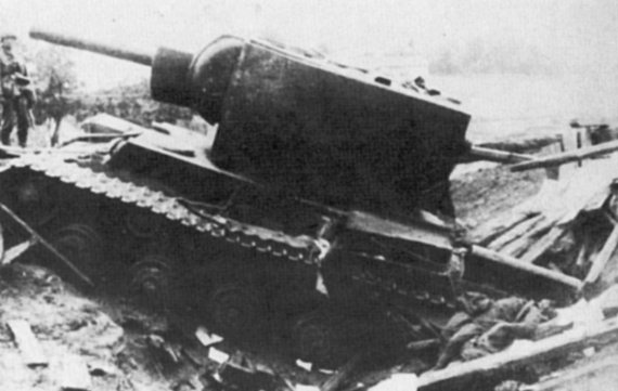 в распоряжение начальника Управления кадров автобронетанковых войск Красной Армии, а экипажи – в запасные танковые полки. Однако зачастую танкистов по-прежнему продолжали использовать не по прямому назначению. В конце декабря 1942 г. последовал окрик Сталина. Предписывалось немедленно всех танкистов, используемых в качестве стрелков, пулеметчиков, артиллеристов в пехоте, других родах войск и тыловых учреждениях, направить в распоряжение автобронетанкового управления РККА. Танкистов, выздоравливающих после излечения в госпиталях, отныне также следовало направлять только в танковые войска. Приказ завершался фразой, исключавшей двойное толкование: «Впредь использование личного состава танкистов всех вышеуказанных категорий и специальностей не по назначению кому бы то ни было категорически запрещаю». Судя по всему, больше к этой теме Верховному Главнокомандующему возвращаться не пришлось. Красная Армия медленно оправлялась после двух проигранных летних кампаний. И хотя танков еще не хватало в войсках, за Уралом еще только разворачивались эвакуированные Харьковский и Ленинградский танковые заводы, армия готовила новые кадры танкистов на замену павшим в бою.Танк «КВ-2» предположительно из состава 16-го тп 8-й тд на южной окраине г. Немиров 25–28 июня 1941 года. Танк видимых боевых повреждений не имеет. Стрелковое вооружение снято