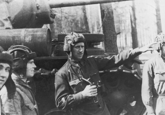 Комиссар танкового батальона товарищ Коллеров проверяет готовность «Т-40» к бою