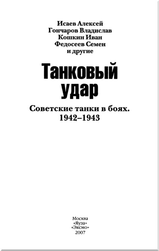 Настоящий сборник посвящен действиям советских танковых войск с осени 1942 по весну — лето 1943 года. Мы сознательно отказались от рассмотрения подробностей Сталинградской битвы, заострив внимание на менее известных наступательных операциях — эпизодах битвы за Кавказ, наступлении советских войск на Среднем Дону в декабре 1942 года (операция «Малый Сатурн»), действиям 3-й танковой армии в операции «Звезда» в феврале 1943 года и действиям 2-й танковой армии в ходе наступления Центрального фронта северо-восточнее Курска феврале-марте.