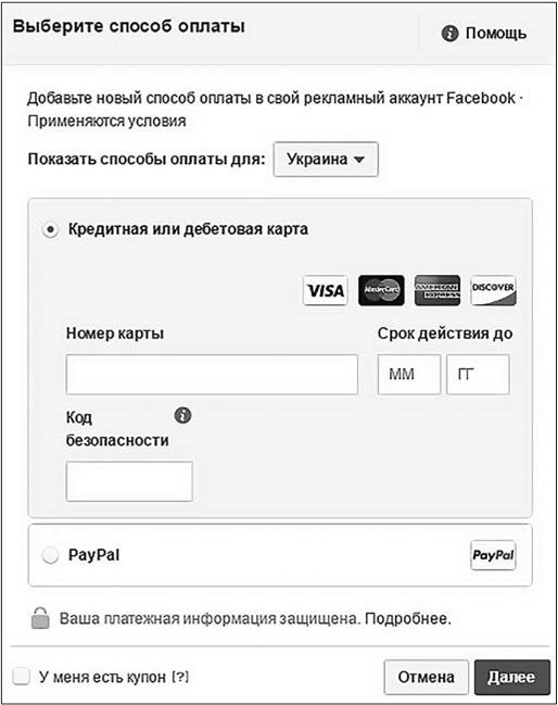 на карте не окажется денег, рекламный аккаунт будет заморожен до погашения долга. Ну а если за кредитный период вы успеваете потратить сравнительно много денег, не пугайтесь, когда Facebook всю сумму снимет в один день.Рис. 1.13