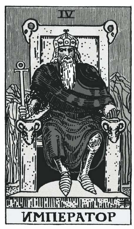Следует понимать, что эта карта вместе с картой Императрицы не совсем буквально представляют супружество, хотя таковое подразумевается. На поверхности, как я уже указал, они означают земную королевскую чету, вознесенную на троны сильных [мира сего]; но сверх того есть намек на иное присутствие. Они также означают – особенно мужская фигура – высшее королевское величество, занимающее трон разума. Здесь скорее власть над думами, чем над чувственным миром. Оба персонажа, каждый по-своему, «богаты удивительным опытом», но мудрость их – неосознанная, черпаемая из высшего мира. Императора характеризовали как: а) воплощенную волю [21] , но это лишь одно из ее применений, и б) выражение потенций, содержащихся в Абсолютном Бытии [22] , – но это [лишь] фантазия.