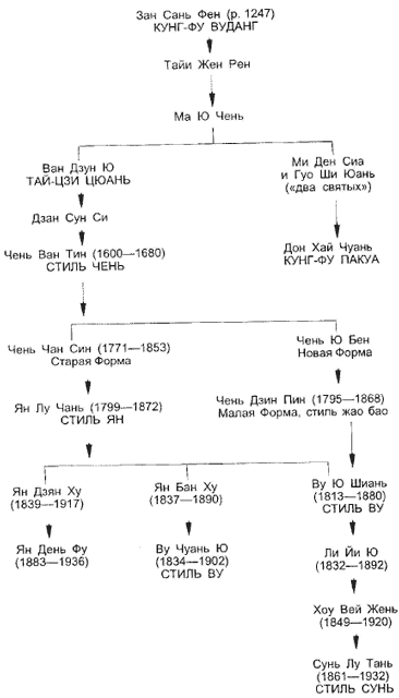 Мне с трудом верится в правдоподобность рассказанной легенды, но Ян Лу Чань, без сомнения, прославил искусство стиля чень. Перед тем как обосноваться в Пекине и открыть собственную школу тай-цзи цюань, он много путешествовал по всей стране, вызывая на поединки мастеров кунг-фу и неизменно побеждая их. Прозванный «Непобедимым Яном», он стал первым чужаком, сломавшим традицию семейственности клана Чень за одно поколение до того, как Чень Дзин Пин покинул семью и открыл школу в Жао Бао.
