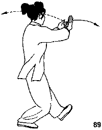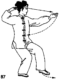 2. Движение рукой (сгибание руки в локте из положения сбоку-сзади, и перемещение ее вперед), аналогично однотипным движениям рук в формах «Охват колена и „упрямый“ шаг» и «Отведение плеча назад».