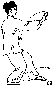 2. Одновременно поставьте левую ногу всей стопой на поверхность и дугообразно согните в колене, свободно выпрямите правую ногу, переместив центр тяжести вперед, таким образом выполнив дугообразный шаг слева; туловище удерживайте прямо.