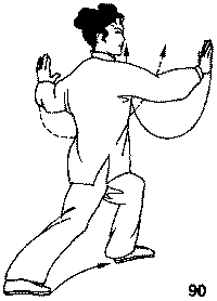 • Первое, в данной форме выполняется «упрямый» промежуточный шаг, а не «послушный», рука, выполняющая толчок вперед, и нога, находящаяся в промежуточном положении, расположены по разные стороны относительно средней линии. Поэтому степень подачи вперед плеча, следующего за кистью, выполняющей толчок, несколько меньше, чем в форме «Отведение плеча назад», и естественность в положении туловища довольно относительна.