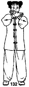 4. При переходе к дугообразному шагу в сторону взгляд направляйте за правой рукой, когда же шаг выполнен, взгляд направлен на правую руку. Во время дугообразных движений руками вниз взгляд сначала контролирует движение правой руки, когда же две руки поднимаются и выполняется обхват, взгляд вслед за поворотом головы влево, на уровне глаз, переводится вперед.