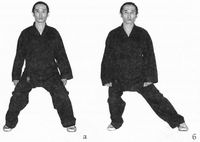 1. Примите исходное положение – туловище естественно выпрямлено, ноги вместе, стопы развернуты, руки свободно опущены вдоль туловища, плечи расслаблены, взгляд направлен вперед.