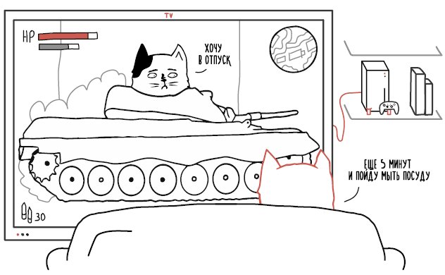 Пока играете, вам совершенно наплевать на богатый внутренний мир своего персонажа: устал ли он или ему жарко, хочет он в отпуск или полежать с книжкой вместо стрельбы. У вас свои цели в игре, и вы достигаете именно их. Давите танчики в Dendy – вам совершенно без разницы, что об этом думает «танкист».