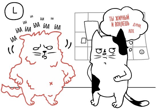 Может показаться, что такая диссоциация неприменима к реальной жизни. Но на самом деле вы наверняка испытывали этот эффект, сами того не осознавая. Например, когда на вас долго кричат: школьная учительница, родители или начальник. В какой-то момент вы просто отключаетесь от происходящего – отстраняетесь и начинаете смотреть на ситуацию со стороны. И пока начальник на вас орет, ловите себя на мысли: «Блин, какой же ты, сука, толстый!»