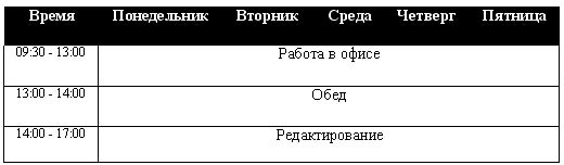 Помните, что его план распределения времени отображал его идеальное расписание. В те дни, когда Джереми должен был принимать участие в совещаниях по проблемам производства или маркетинга, он мог появляться в офисе, но при этом должен был обязательно восполнить это время, чтобы иметь те самые двадцать часов в неделю, посвящая их редакторской работе. В главе 9 вы научитесь менять задачи местами, по-прежнему поддерживая идеальное равновесие между различными видами вашей деятельности.