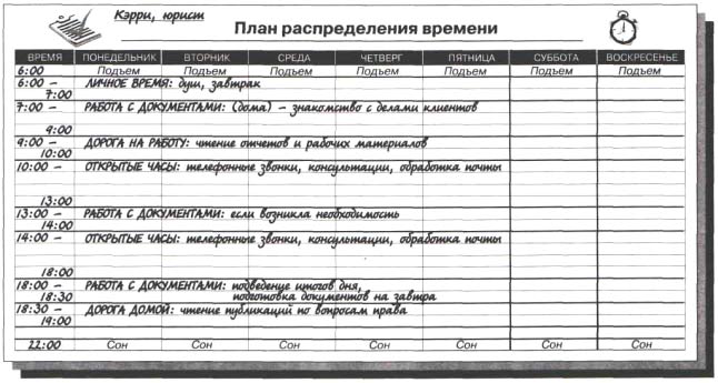 Джереми понял, что сама по себе его идея распределения времени между различными видами деятельности была правильной, но он просто занимался редактированием в неправильное, не подходящее для этого время. Он переставил время редакторской работы на утро. Теперь он проводил послеполуденное время в офисе, отвечая на телефонные звонки, накопившиеся за первую половину дня. Он перезванивал людям в тот же день. Все его проблемы в области коммуникаций тотчас же разрешились. Джереми просто потребовалось внимательно посмотреть на свой план распределения времени и внести в него простые изменения, и он стал прекрасно работать.