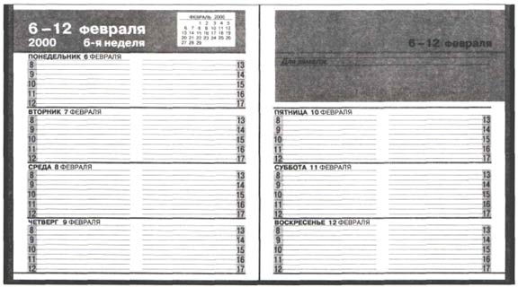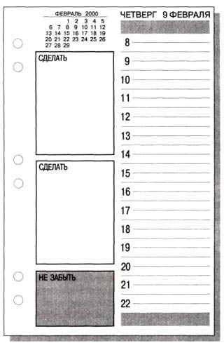 Формат планировщика, в котором на каждый день отводится одна страница календаря, удобен тогда, когда ежедневный список ваших дел включает в себя до двенадцати задач
