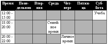 Работа с планом распределения времени обеспечивает вам достаточно гибкости. Самое главное — отдавайте себе отчет, делая замены, и всегда старайтесь восстановить баланс между различными видами деятельности, который вы установили для себя ранее.