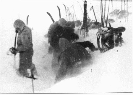 Ниже по ходу изложения станет понятно, почему эти обстоятельства имеют первостепенное значение. Состояние снежного покрова, рельеф склона, особенности установки палатки на склоне и метеоусловия в ночь аварии явились главными факторами критической, а затем и аварийной ситуации на склоне горы Холатчахль.