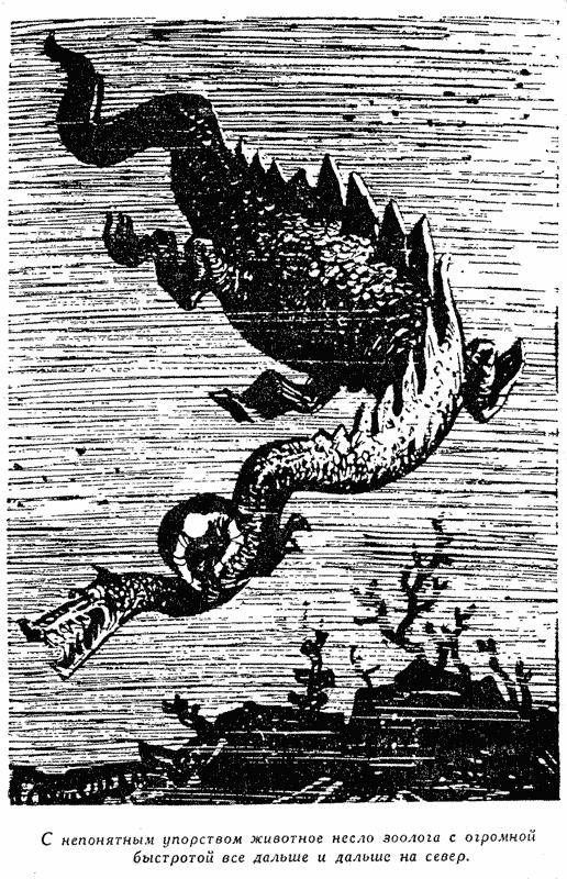 С непонятным упорством животное несло зоолога с огромной быстротой все дальше и дальше на север.