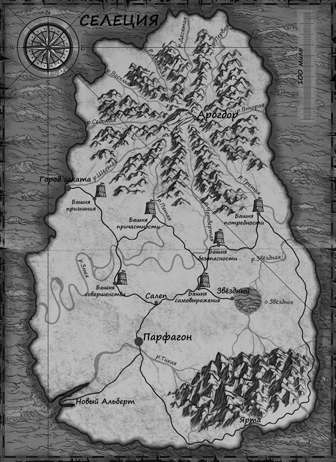 Их увлеченный хлопотами отец, умелый охотник и рыбак, аккуратно складывал в промокшую телегу свою ценную добычу: внушительную связку сушеной рыбы, две лисьих и охапку заячьих шкур, а также целую тушу молодого оленя. Он готовился совершить свою еженедельную поездку на рынок в ближайший город Салеп, где намеревался выручить за свой достойный товар хотя бы пятнадцать серебряных монет или удачно обменять его на другие нужные для его семьи продукты и вещи. При этом четверть всего груза следовало отдать в виде дани для повседневных нужд и неприступной защиты великого Парфагона, чьим обширным территориям принадлежало их небольшое село и ближайший город. Не считая холодного и тревожного вулкана, дружное королевство занимало всю южную часть прекрасной Селеции, одиноко простирающейся в бескрайнем, всегда бушующем море с нагоняемыми ветрами то с запада, то с востока сокрушительными волнами.