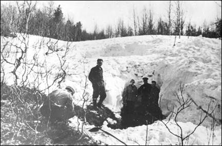 Наконец, оттаивание вызвало появление в лесу из-под снега отдельных предметов одежды (сожженные брюки Кривонищенко и кофта) и обрезков веток пихт, которые указали спасателям нужное направление розыска. Они привели в ложбину ручья примерно в 70 м от кедра. Ложбину сильно занесло снегом,